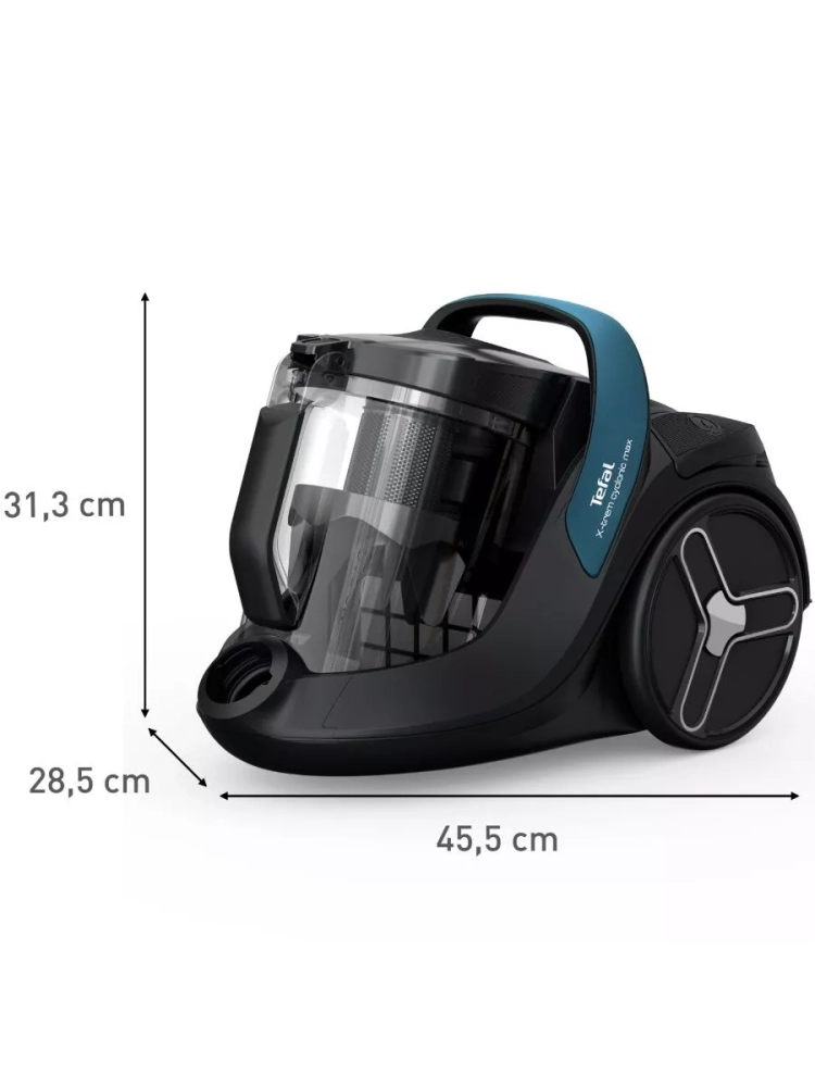 Пылесос с контейнером Tefal X-Trem Cyclonic Max TW7B11EA – это идеальное сочетание высокого качества очистки поверхностей и комфортного процесса уборки. Его мотор обеспечивает ту же производительность, что и модели мощностью 2100 Вт* (*Результаты внутренних испытаний со сбором пыли, проводимые в соответствии со стандартом EN 60312, по сравнению с приборами Tefal мощностью 2100 Вт), а вместительный контейнер объемом 2,5 л позволяет проводить длительные сеансы уборки без необходимости освобождать его от мусора и пыли.