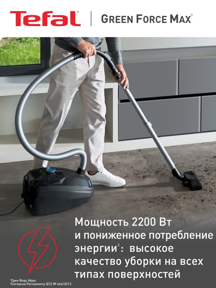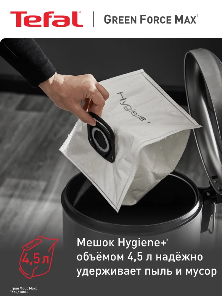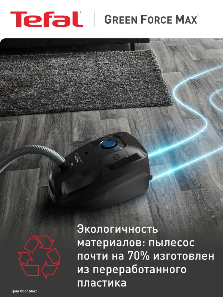 Пылесос с пылесборником Tefal Green Force Max TW4931EA – это прибор, который сочетает в себе высокую производительность, удобство и экологичность.