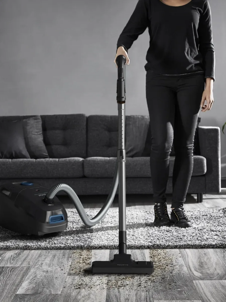 Благодаря мощному мотору 900 Вт с пониженным энергопотреблением техника для дома эффективно справляется с уборкой на любых поверхностях, а увеличенный радиус действия 12 м позволяет легко убирать большие помещения без необходимости переключения между розетками. Домашний пылесос Тефаль изготовлен почти на 70% из переработанного пластика, а до 82% его деталей пригодны для вторичной переработки. Упаковка полностью экологична и подлежит переработке, что снижает нагрузку на окружающую среду.