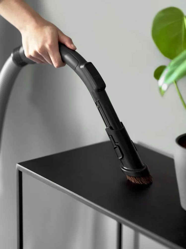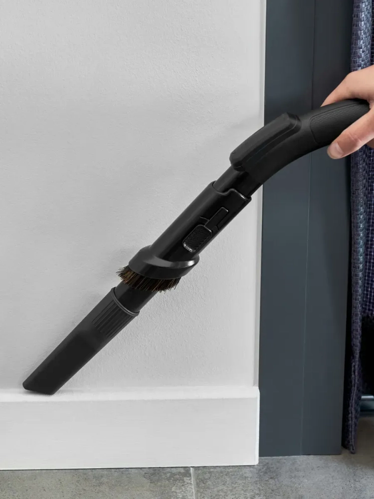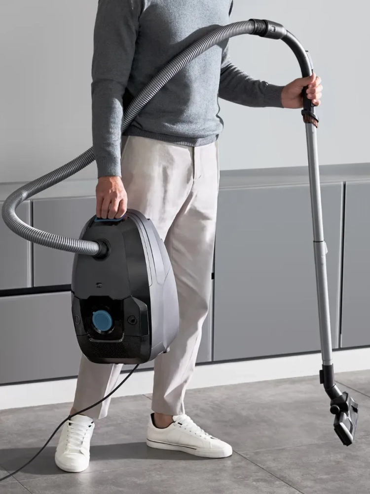 Проводной пылесос оснащен HEPA-фильтром, который обеспечивает фильтрацию минимум 99,98% частиц пыли и шерсти размером до 0,3 мкм, очищая воздух в процессе уборки и создавая комфортные условия для аллергиков и семей с детьми. Пылесборник Hygiene+ позволяет избежать контакта с грязью, обеспечивая максимальную гигиену. Кроме того, в комплекте есть удобные насадки для наведения порядка: щелевая – для труднодоступных мест и насадка для мягкой мебели – для эффективной чистки текстильных и мягких поверхностей. Компактный и эргономичный дизайн делает портативный пылесос удобным в использовании и хранении.