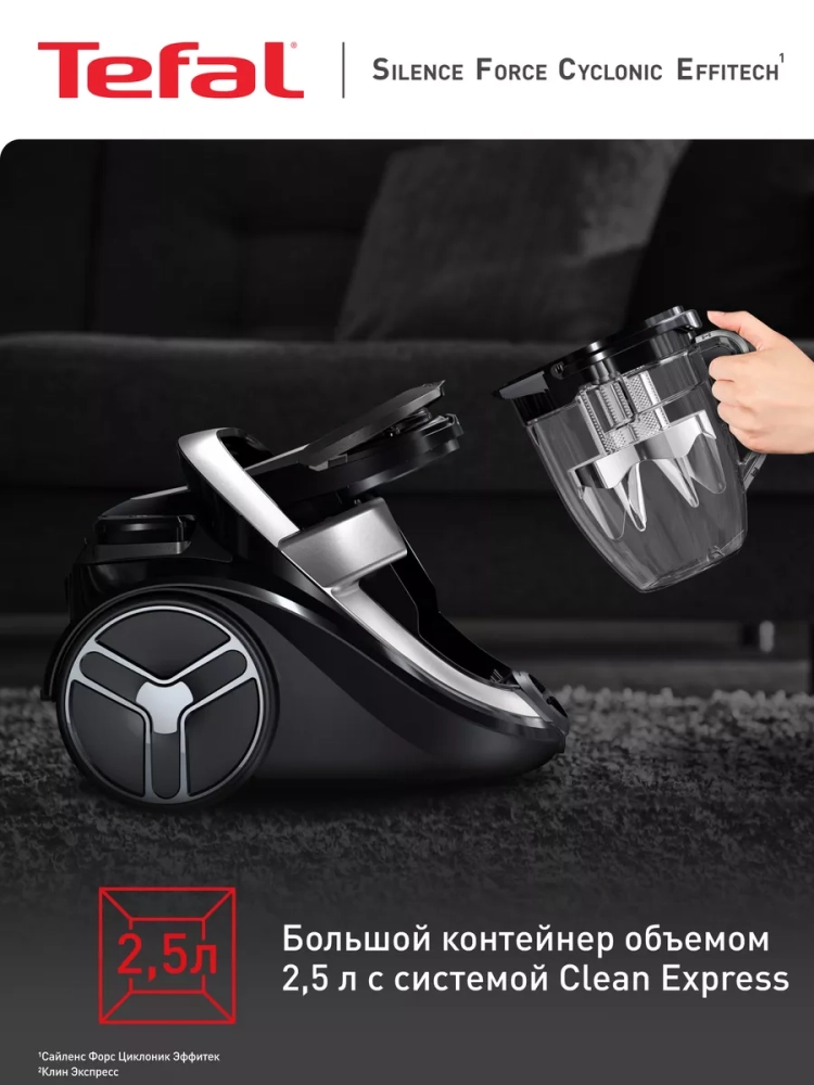 Товар произведен во Франции в соответствии с высочайшими стандартами качества и производства. Проводной пылесос Silence Force Cyclonic Effitech от Tefal станет вашим надежным помощником в доме!