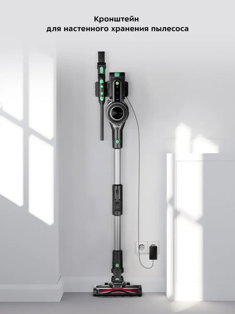 Беспроводной вертикальный пылесос Kitfort КТ-5168 очень удобен при локальной и генеральной уборке. Он компактен, всегда под рукой и готов к работе. При отсоединении удлинительной трубки и установке насадки он превращается в ручной пылесос. У данного пылесоса складная трубка — такая конструкция позволяет легко проникать в самые труднодоступные уголки квартиры.