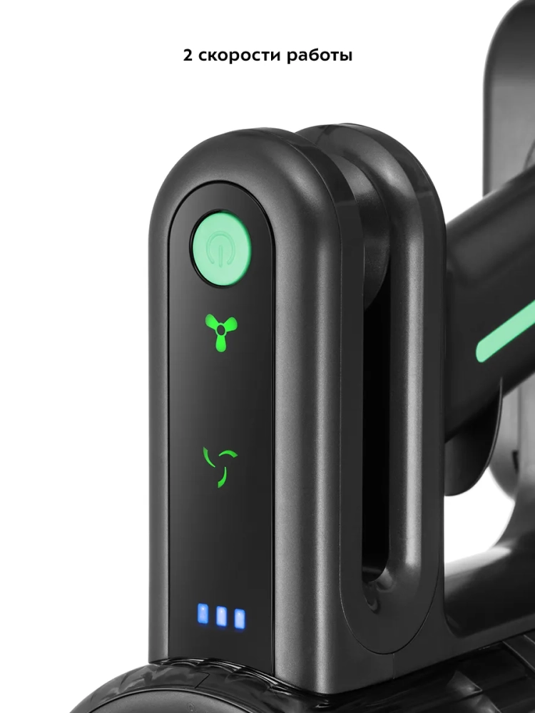 Пылесос комплектуется турбощеткой, которая качественно очищает гладкие поверхности и ковровые покрытия с коротким ворсом. Также к пылесосу прилагается насадка «2 в 1», узкая насадка для труднодоступных мест и кронштейн для настенного хранения устройства. Светодиодная подсветка на напольной щетке способствует более качественной уборке.