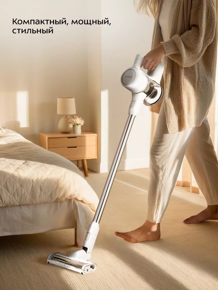 Одно из главных достоинств вертикального пылесоса — его компактность. Во время работы пылесос благодаря своей маневренности поможет легко убраться в узком коридоре или комнате, заполненной различными предметами. Для владельцев небольших квартир приобретение этой модели будет оптимальным вариантом. Вертикальный пылесос хорошо подходит для оперативной уборки, например, рассыпанных крошек или песка от обуви в коридоре.