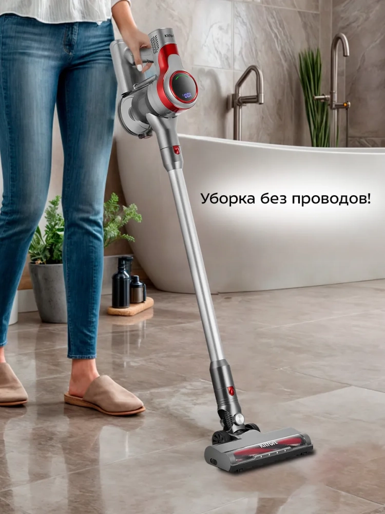Беспроводной вертикальный пылесос Kitfort КТ-5282 очень удобен при локальной уборке. Он компактен, всегда под рукой и готов к работе. При отсоединении удлинительной трубки и установке насадки он превращается в ручной пылесос. Его конструкция позволяет легко проникать в самые труднодоступные уголки квартиры. При этом не нужно передвигать громоздкий корпус проводного пылесоса и управляться с непослушным шлангом. Благодаря работе от аккумулятора не нужно подключать устройство к сети во время уборки, поэтому провода не мешают под ногами, и пылесос имеет неограниченный радиус действия: от любого уголка квартиры до машины или беседки в саду. Пылесос оснащен маневренной напольной щеткой, которая вращается в двух плоскостях.