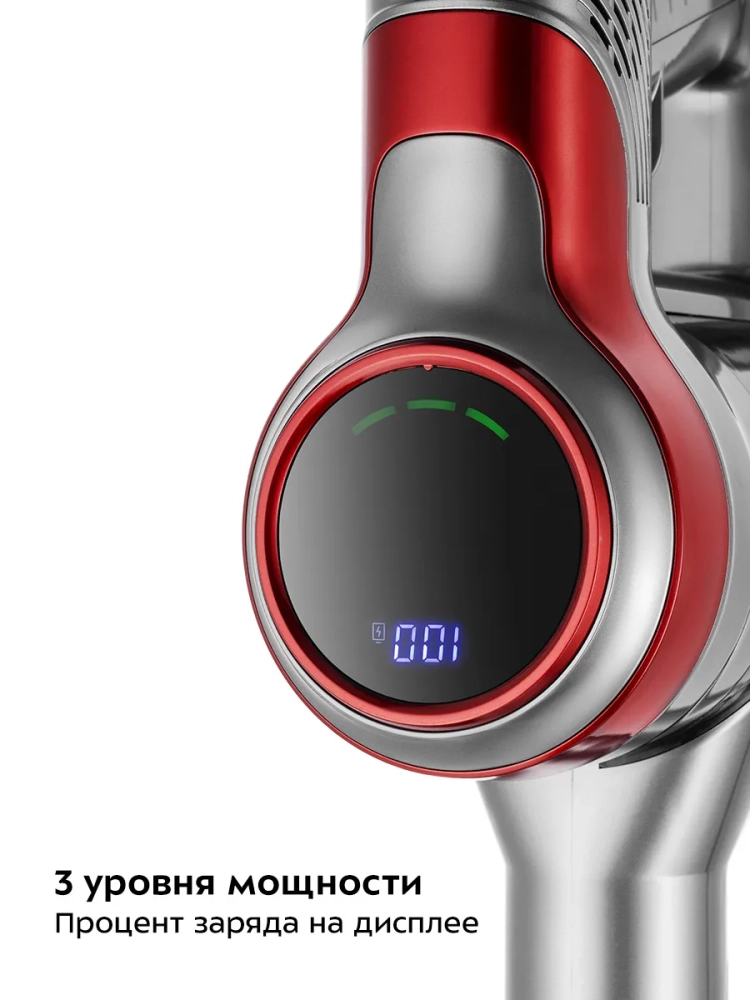 Пылесос комплектуется напольной насадкой с турбощеткой, которая помогает качественно справиться с очисткой гладких поверхностей и ковровых покрытий с недлинным ворсом. Светодиодная подсветка напольной щетки сделает уборку комфортной даже в затемненных местах. Также к пылесосу прилагаются: насадка «2 в 1», щелевая насадка и кронштейн для настенного хранения устройства.