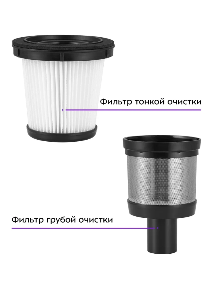 Пылесос оборудован современным циклонным фильтром, обеспечивающим хорошую очистку. Крышка пылесборника легко открывается, а пыль из него вытряхивается очень просто. Внутри пылесборника находится фильтр тонкой очистки и фильтр грубой очистки c металлической сеткой, которые можно вынуть и почистить. Мелкие частицы, которые не захватываются потоком циклонного фильтра, фильтруются фильтром грубой очистки. Фильтр тонкой очистки останавливает мельчайшие частички пыли, чтобы они не могли попасть в мотор устройства. В моторном блоке установлен поролоновый фильтр, который предотвращает попадание оставшейся пыли обратно в воздух. Выходной фильтр несъемный и рассчитан на весь срок службы вертикального пылесоса.