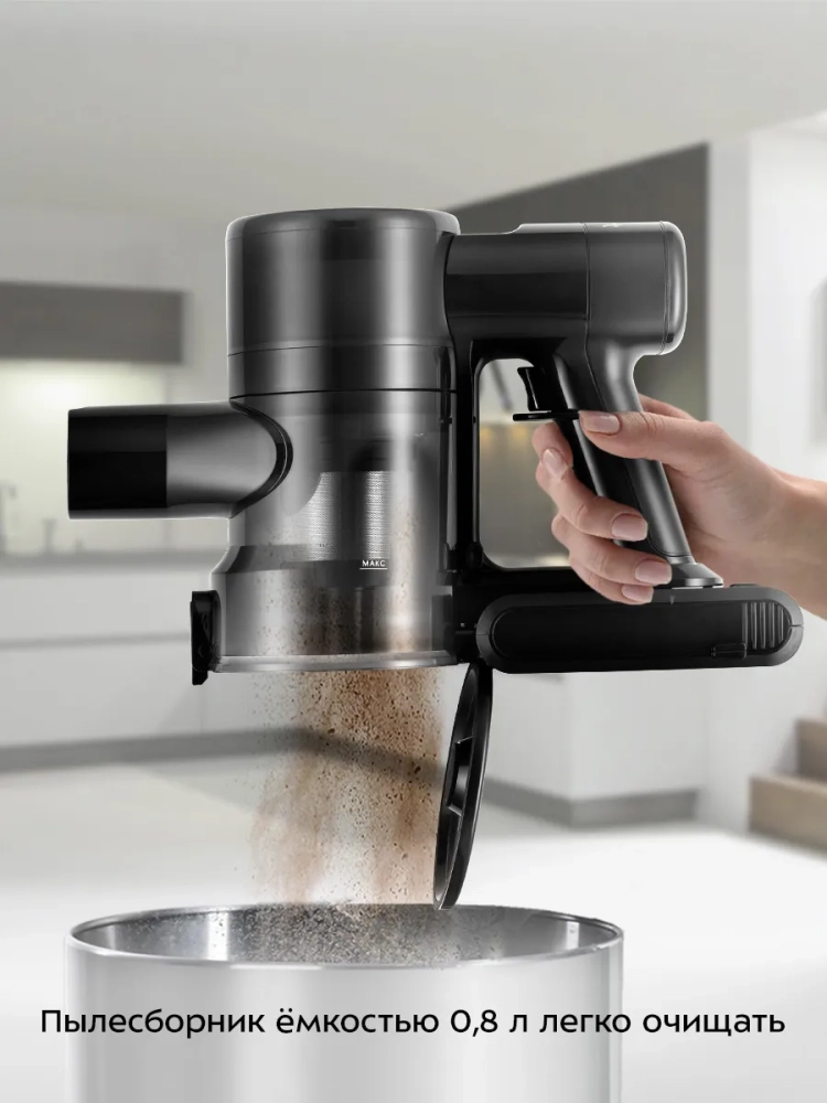 Конструкция «2 в 1» предусматривает наличие ручного пылесоса, который удобно использовать отдельно. Ручным пылесосом можно пропылесосить углы и плинтусы, обивку мебели, пыль со шкафов, шкафчики на кухне или в гостиной, книжные полки, коврики в автомобиле или багажник.