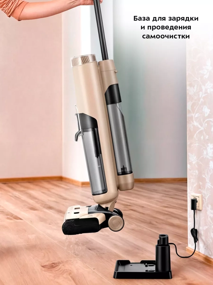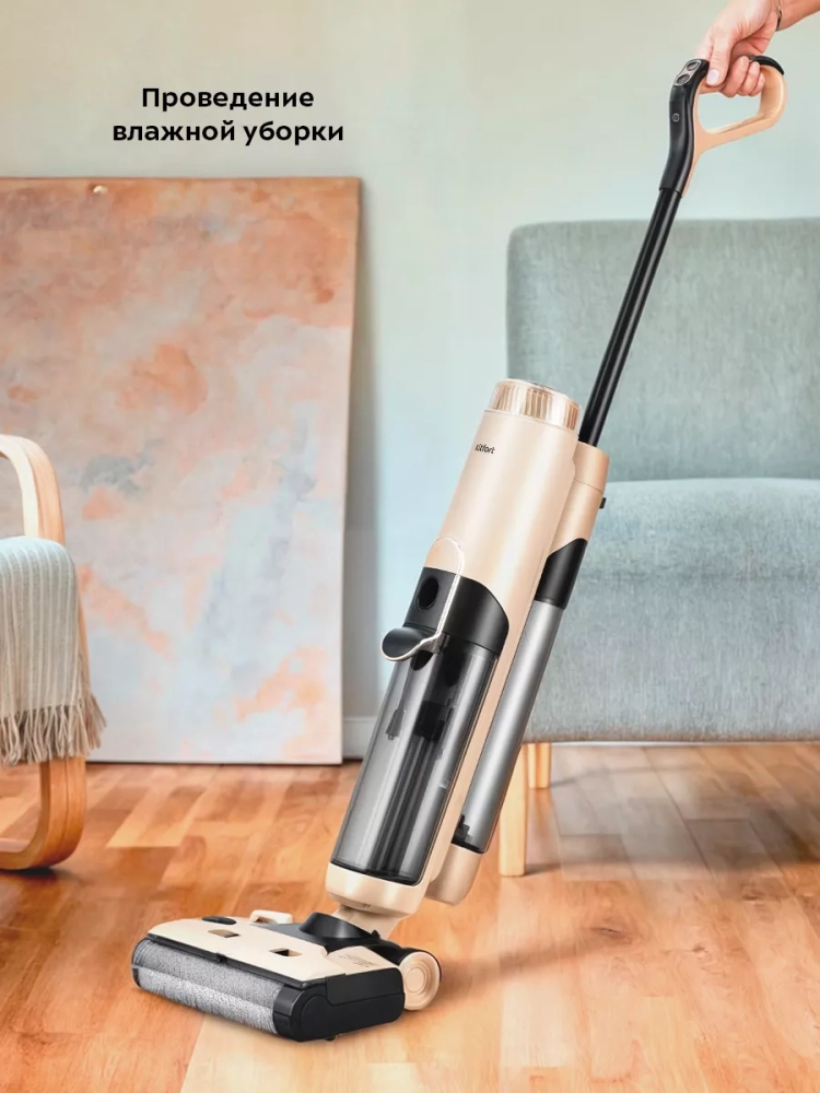 Беспроводной вертикальный моющий пылесос Kitfort КТ-5160 очень удобен при проведении влажной уборки. Благодаря работе от аккумулятора во время использования пылесос не нужно включать в сеть и провода не будут мешаться под ногами.
