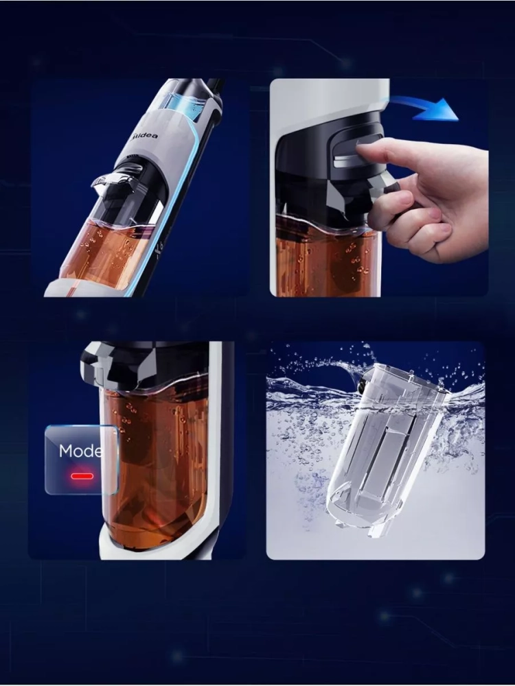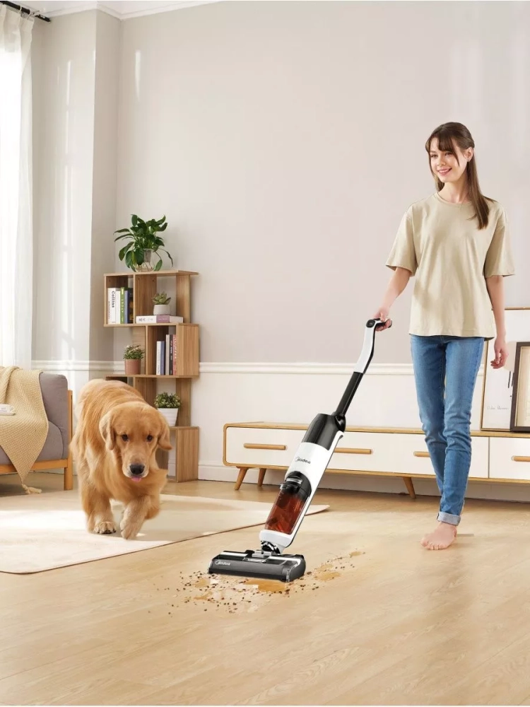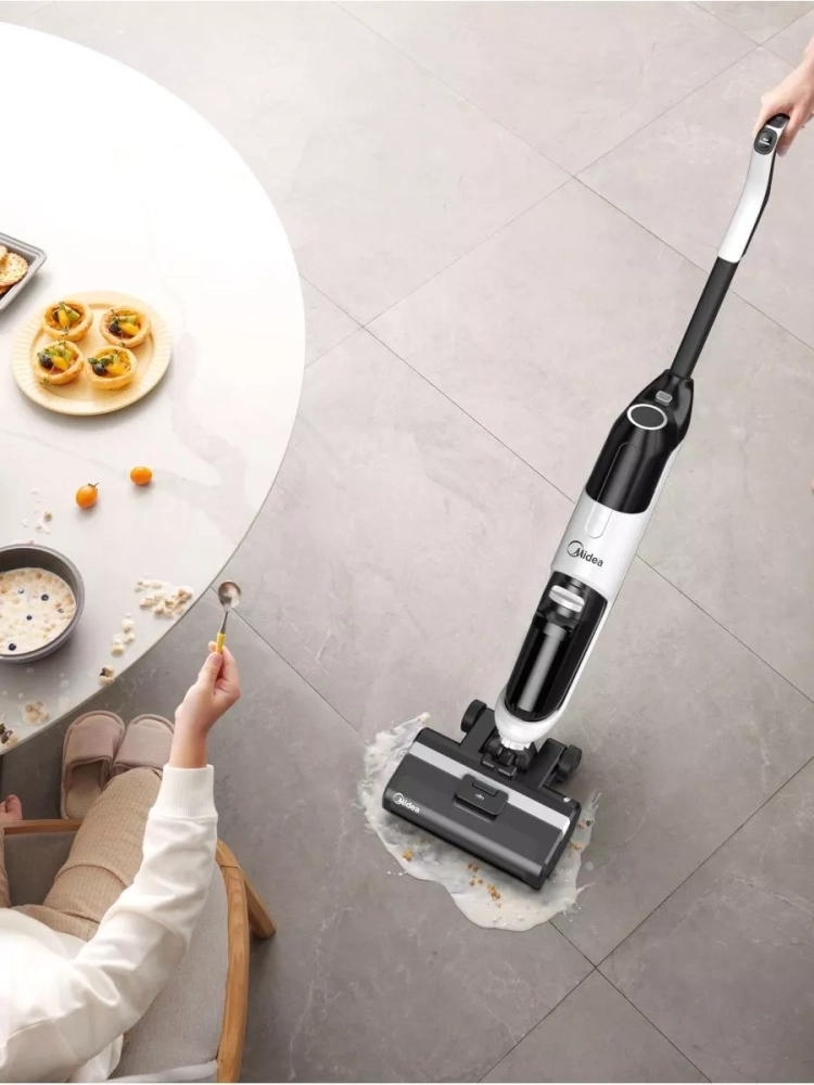 Midea VSS1200 осуществляет как сухую, так и влажную уборку, убирая загрязнения за один проход и не оставляя разводов.