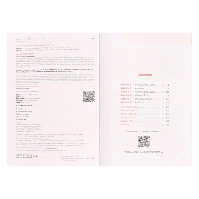Рабочая тетрадь. Звездный английский. 4 класс. В 2-х частях Часть 2. Баранова К. М.