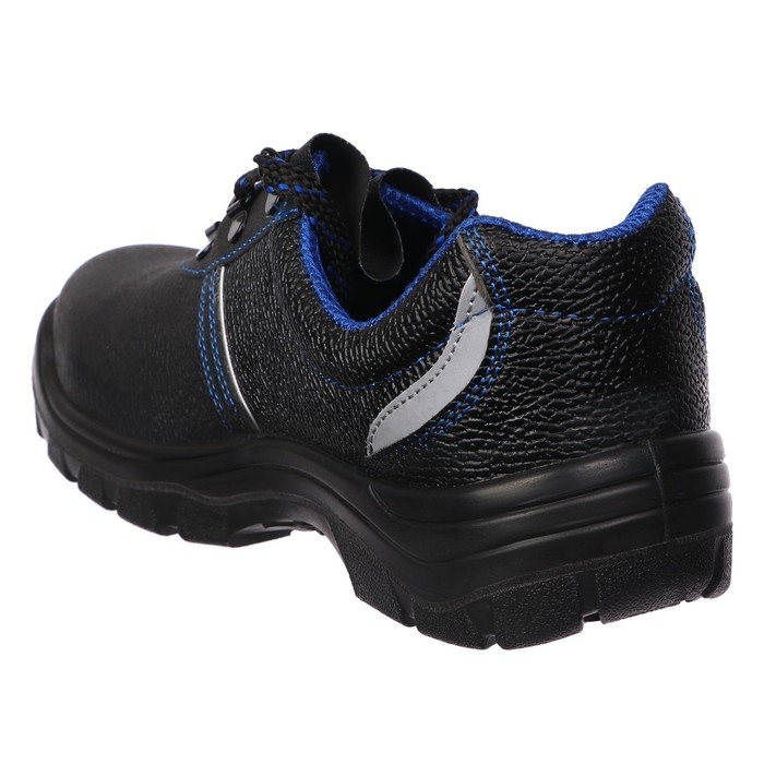 Ботинки из натуральной кожи Prosafe серии basic c защитным фронтальным клапаном, препятствующим попаданию искр, предназначены для защиты ног от общих производственных загрязнений в отапливаемых помещениях и на открытом воздухе в летний период. Текстильная подкладка Камбрель обеспечивает воздухопроницаемость и гигроскопичность. В модели предусмотрена текстильная съемная стелька. Светоотражающие элементы повышают видимость работников в темное время суток, а также на неосвещенной территории. Подошва - двухслойная, маслобензостойкая, литьевого метода крепления. Промежуточный слой изготовлен из ПУ с внутренней амортизирующей вставкой в пяточной части подошвы, способной гасить ударные нагрузки при ходьбе. Ходовой слой- износостойкая термостойкая нитрильная резина, способная защитить стопу от кратковременного контакта подошвы с нагретой поверхностью до 300°С. Металлический подносок обеспечивает защиту пальцев стопы от механических повреждений ударной прочностью до 200Дж.