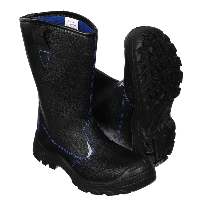 Кожаные сапоги Prosafe серии basic предназначены для защиты ног от общих производственных загрязнений. В модели предусмотрены боковые петли в верхней части голенища для удобного надевания. Подкладка и вкладная стелька изготовлены из текстильного сетчатого материала. Светоотражающие элементы повышают видимость работников в темное время суток, а также на неосвещенной территории. Однослойная маслобензостойкая полиуретановая подошва литьевого метода крепления имеет вставку в пяточной части подошвы, обладающую амортизационными свойствами и способную гасить ударные нагрузки при ходьбе. Глубина протектора ходового слоя обеспечивает хорошую сцепляемость с поверхностями и препятствует скольжению за счет рельефа протектора. Металлический подносок обеспечивает защиту пальцев стопы от механических повреждений ударной прочностью до 200Дж.