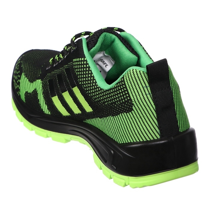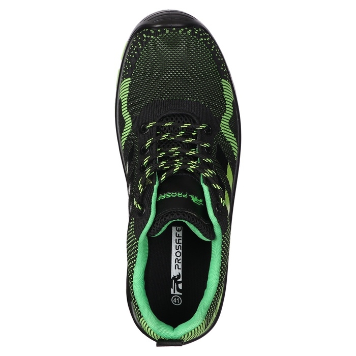 Полуботинки Prosafe серии Sport спортивного стиля с текстильным верхом Flyknit предназначены для защиты ног от общих производственных загрязнений в летний период. Гигроскопичная дышащая подкладка из сетчатого материала поддерживает оптимальную температуру внутри. В модели предусмотрена текстильная вкладная стелька. Шнуровка обеспечивает комфортную адаптивную посадку. Двухслойная маслобензостойкая ПУ подошва литьевого метода крепления имеет вставку в пяточной части подошвы, обладающую амортизационными свойствами и способную гасить ударные нагрузки при ходьбе. Глубина профиля ходового слоя подошвы - 3.5 мм. Подошва препятствует скольжению за счет разнонаправленных водоотводящих канавок и выполненных неровностей ходового слоя. Композитный подносок обеспечивает защиту пальцев стопы от механических повреждений ударной прочностью до 200Дж.