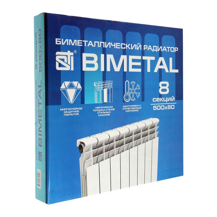 Радиатор биметаллический STI, 500 х 80 мм, 8 секций