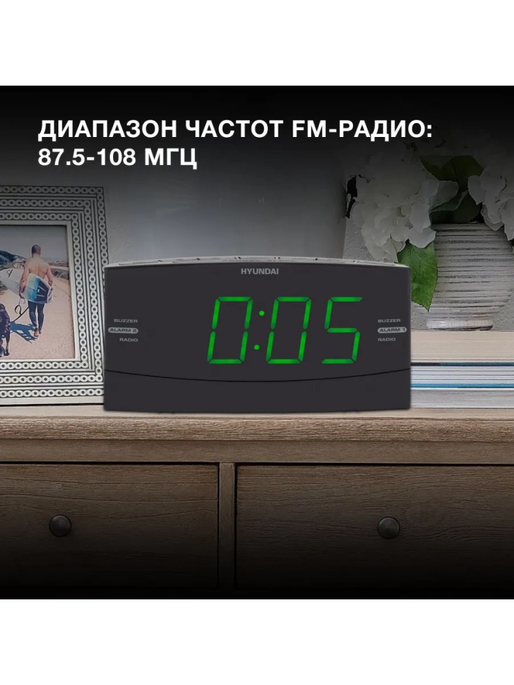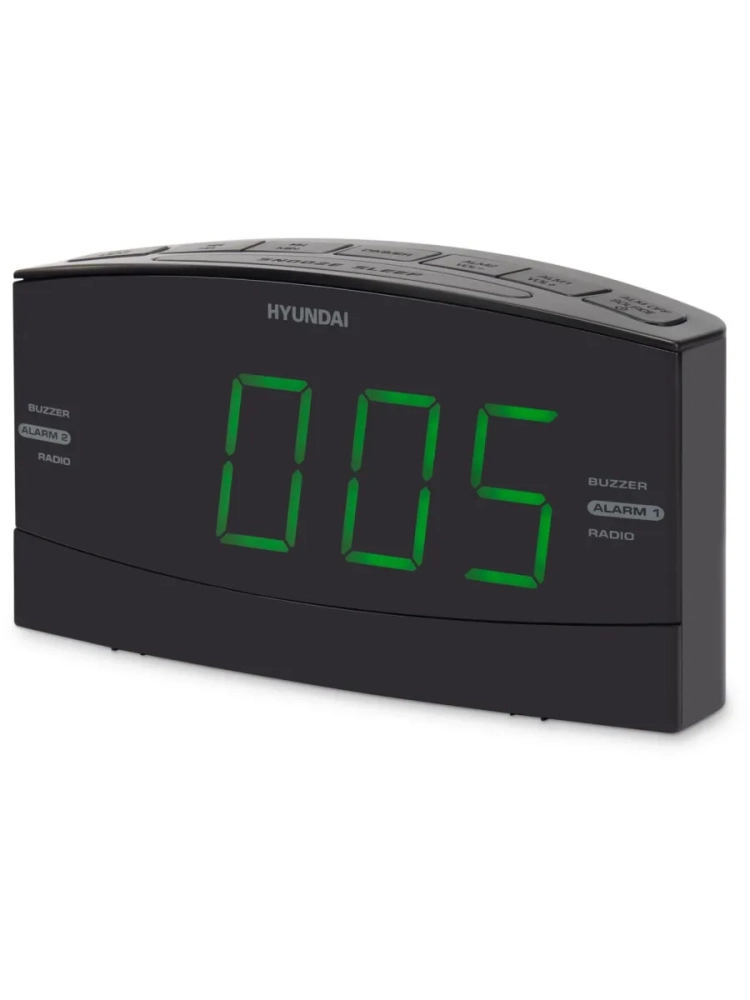 Радиобудильник Hyundai H-RCL238 черный, зеленая подсветка часов, цифровой FM тюнер.