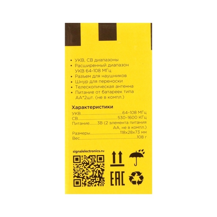 Радиоприемник "Эфир-01", УКВ 64-108 МГц, бат. 2xAA (не в комплекте)