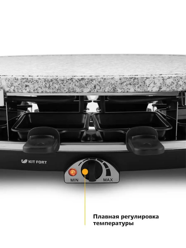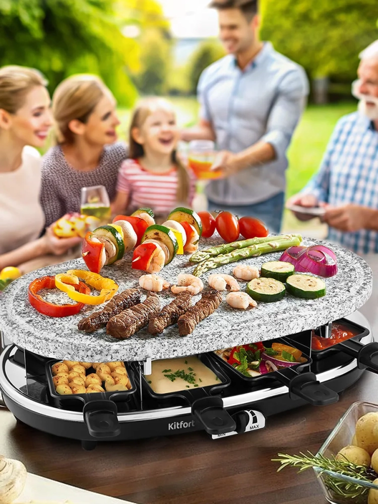 Раклетница Kitfort КТ-1651 — это устройство для приготовления разнообразных закусок, а также она может объединить вокруг себя теплую компанию друзей.
