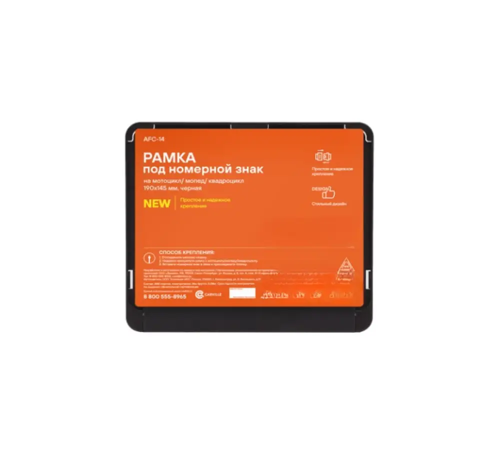 Применяется для крепления гос.номеров к кузову мотоциклов, мопедов или квадроциклов.Рамка изготовлена из материалов, не подверженных морозу и перепадам температур. Установка рамки не займет много времени, т.к. изделие имеет простой механизм крепления-нижнюю запорную планку.