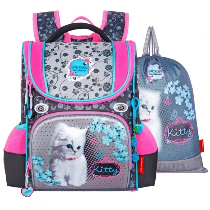 Ранец школьный Стандарт, раскаладной, 35 х 22 х 12 см, Across 191, наполнение: мешок, серый/фиолетовый ACR22-191-7