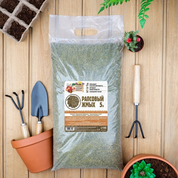 Рапсовый жмых легко разлагается в почве, и содержащиеся в нём элементы питания быстро переходят в форму, доступную для растений. За 10 дней до 50% азота (при благоприятных условиях температуры и влажности) переходит в минеральную форму.
