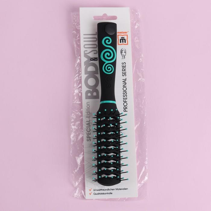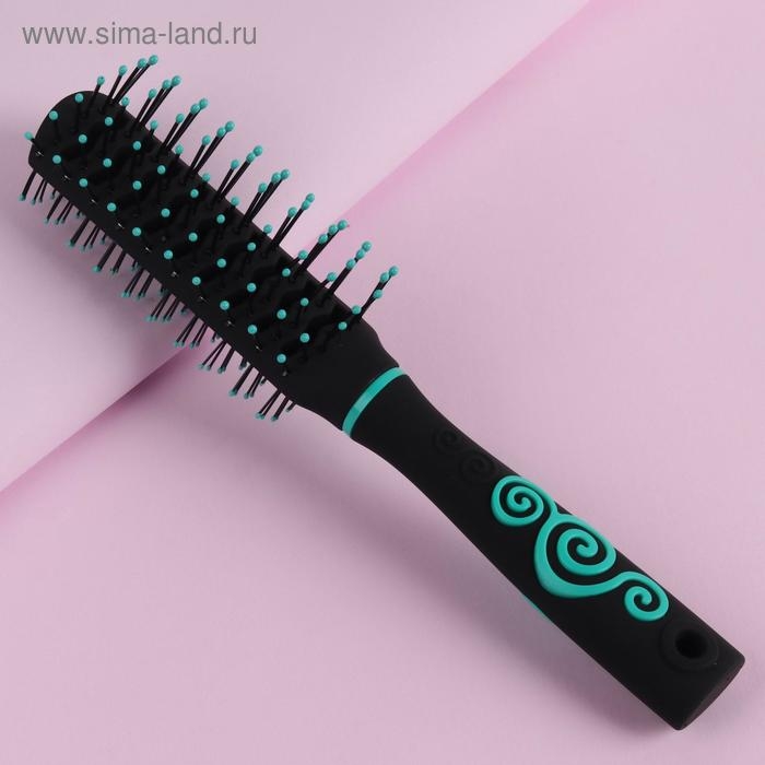 Расчёска массажная, вентилируемая, 4,5 × 23 см, цвет чёрный/бирюзовый