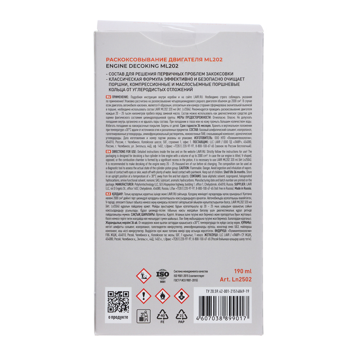 Раскоксовывание двигателя LAVR ML-202 комплект, 190 мл Ln2502