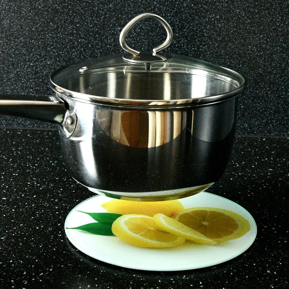 Стеклянная доска — практичное решение для нарезки и разделки продуктов. Изделие можно использовать в качестве подставки под горячее, стекло выдерживает температуру посуды, только что снятой с плиты. Для обеспечения термоизоляции и предотвращения скольжения на обратной стороне доски расположены пластиковые ножки. Доска-подставка выполнена из стекла — гигиеничного материала, который не впитывает грязь и запахи и отлично моется. Пользоваться таким приспособлением одно удовольствие. Яркий рисунок порадует вас во время приготовления пищи и станет милым дополнением к интерьеру. Доску можно мыть в посудомоечной машине. Диаметр 20 см.