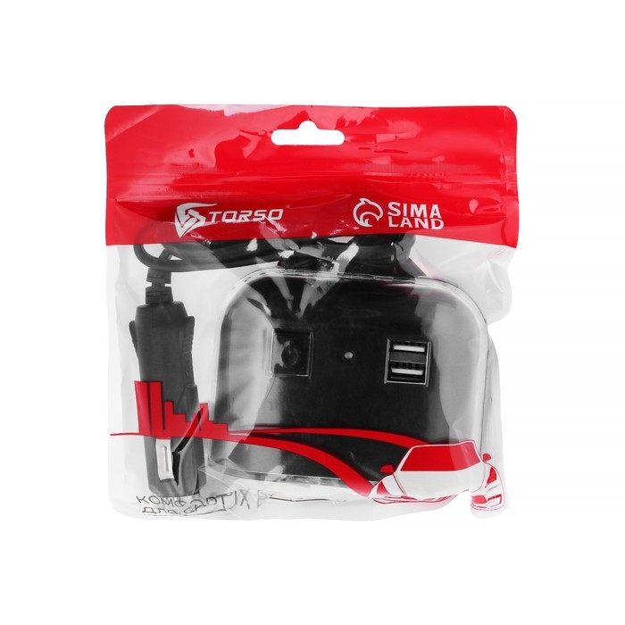 Разветвитель прикуривателя TORSO, 12-24 В, USB 2А, провод 40 см