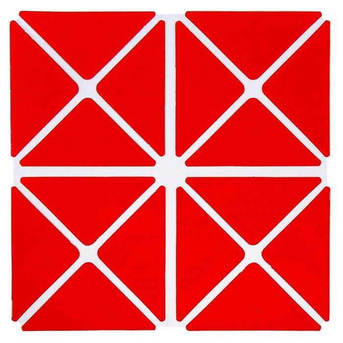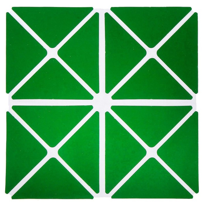 Развивающая игра представляет собой квадратное поле, включающее 16 равнобедренных треугольников размером 4,5 × 4,5 × 6 см. Они наклеены друг от друга на расстоянии 3–5 мл на гибкую тканевую основу. С одной стороны детали красного цвета, с другой — зелёного. Складывайте элементы по линиям сгиба в разных направлениях, составляйте геометрические и предметные фигуры по схеме в альбоме или придумывайте собственные. Чтобы научить ребёнка объёмному конструированию, разрезайте детали в определённых местах, указанных в приложении. Этот материал знакомит детей с основами геометрии, стереометрии, моделирования и счётом.