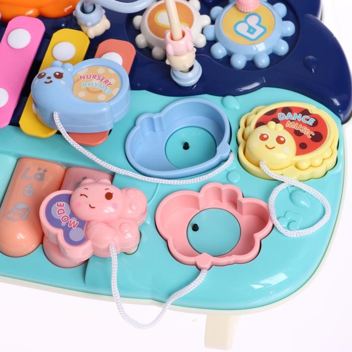 Ребёнок будет крутить шестерёнки, нажимать, двигать детали, слушать приятную музыку и играть. С весёлой игрой ребёнок научится различать цвета, формы, выучит счёт и ноты.