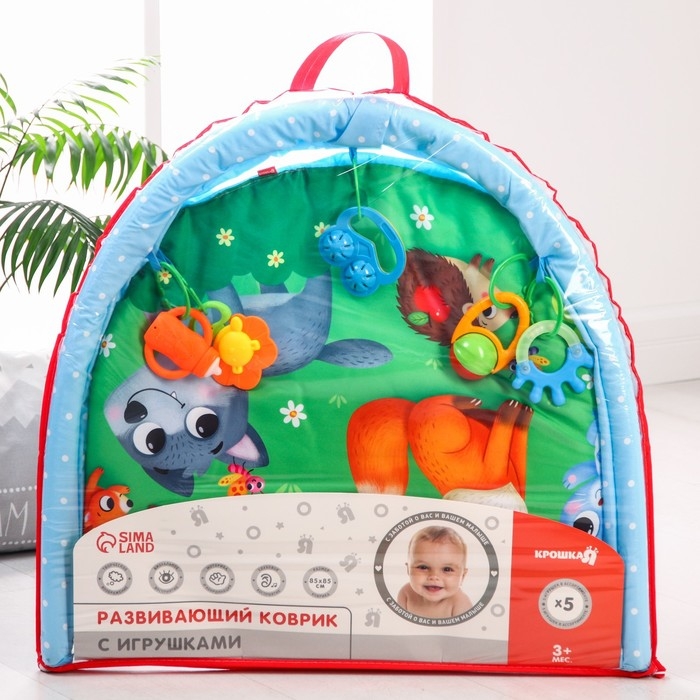 Развивающий коврик с дугами «Лесные зверята», 85х85 см, Крошка Я,
