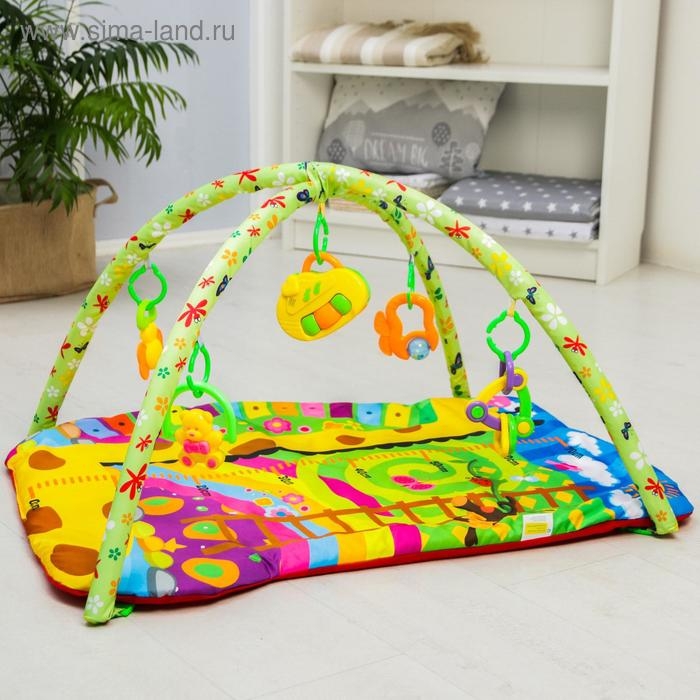 Развивающий коврик 3 в 1 «Енот», 68х68 см, 30 цветных шариков, 5 игрушек, Крошка Я