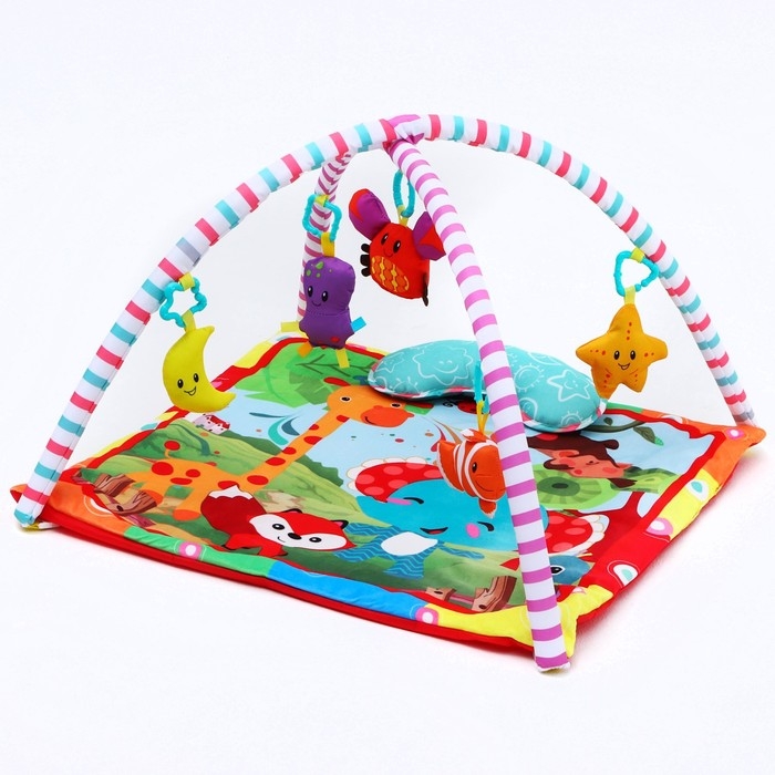 Развивающий коврик 3 в 1 «Лев», 68x68 см, 30 цветных шариков, 4 игрушки, Крошка Я