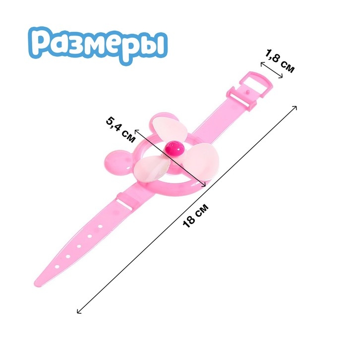 - Помогите ребёнку надеть браслет на руку. Попросите малыша отодвинуть запястье на расстоянии 5–10 сантиметров от рта и подуть на лопасти браслетика.