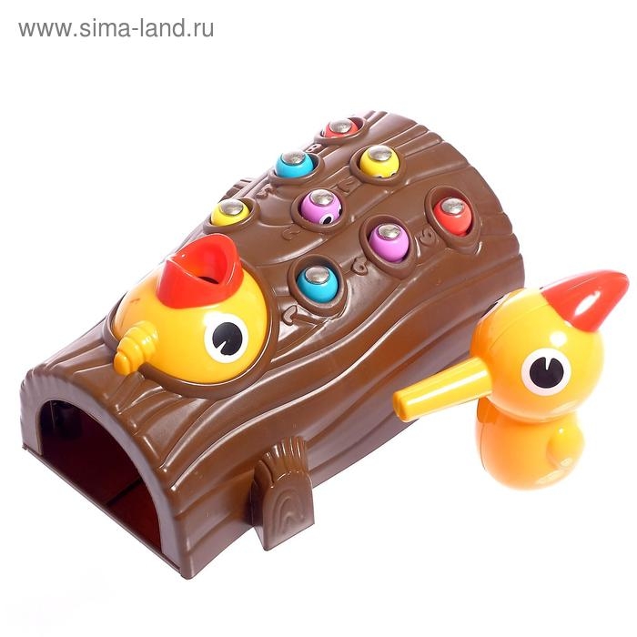 Маленький птенчик проголодался, а хитрые червячки спрятались в своих домиках. Помогите дятлу накормить своего малыша!