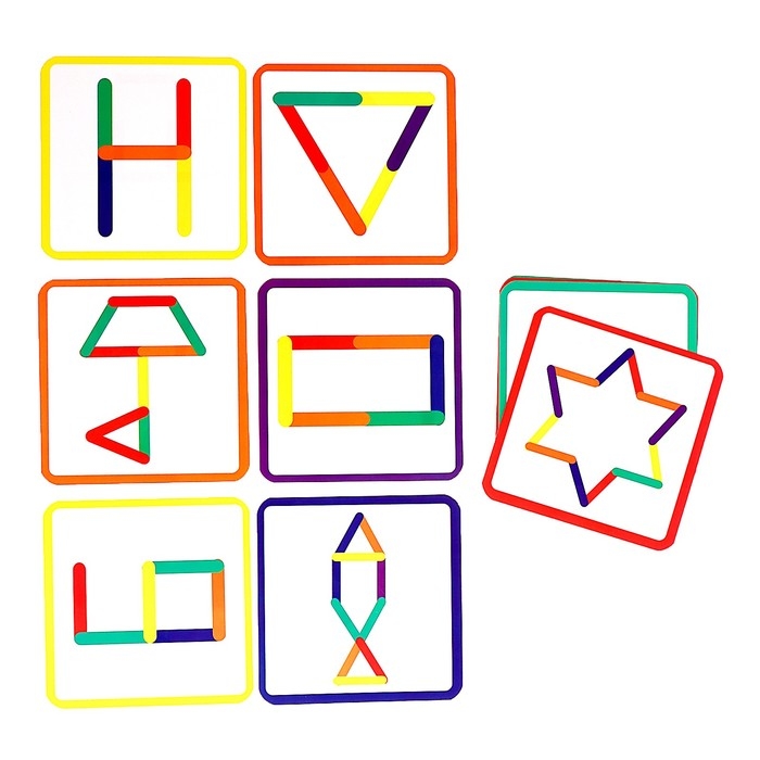 Используйте разные варианты игры, сортируйте палочки по цвету или счёту, стройте геометрические фигурки. Складывайте из них картинки и развивайте память малыша.