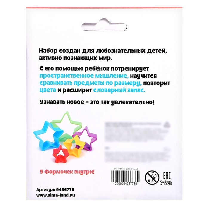 Внутри вы найдёте 5 цветных звёздочек разных размеров, карточки с 10 заданиями и памятку для родителей.