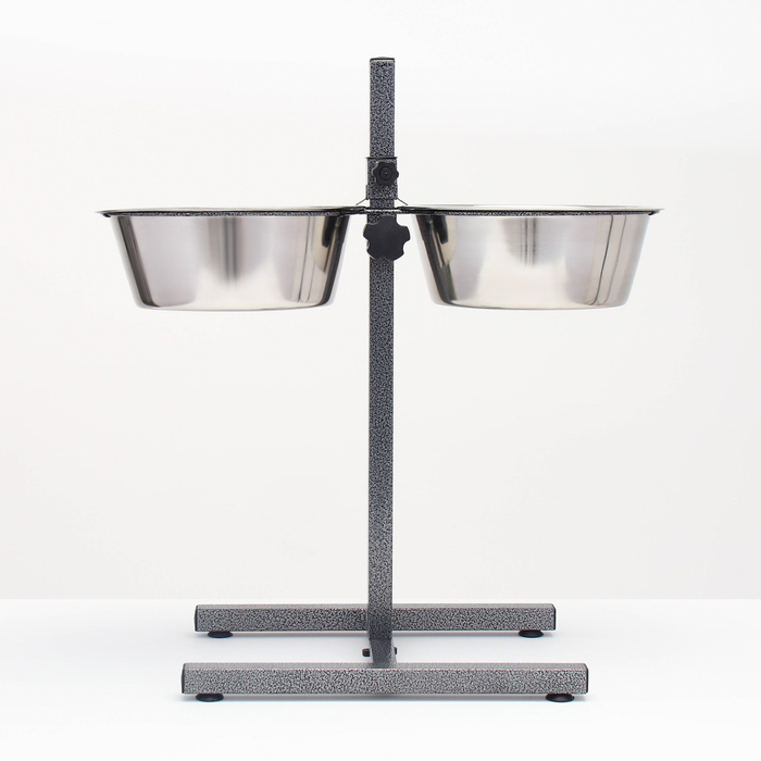 Подставка с мисками, 2 х 500 мл, высота 30 см, разборная, чёрная