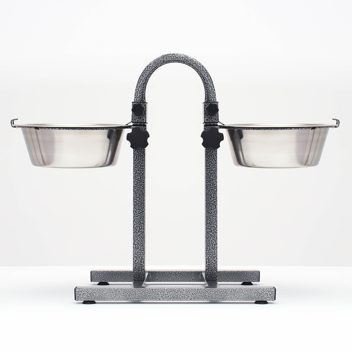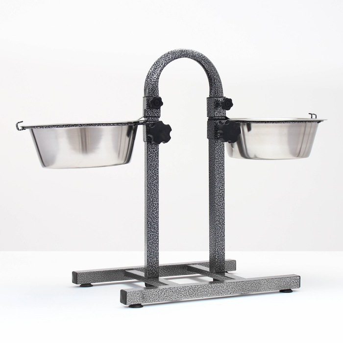 Подставка с мисками, 2 х 500 мл, высота 30 см, разборная, чёрная