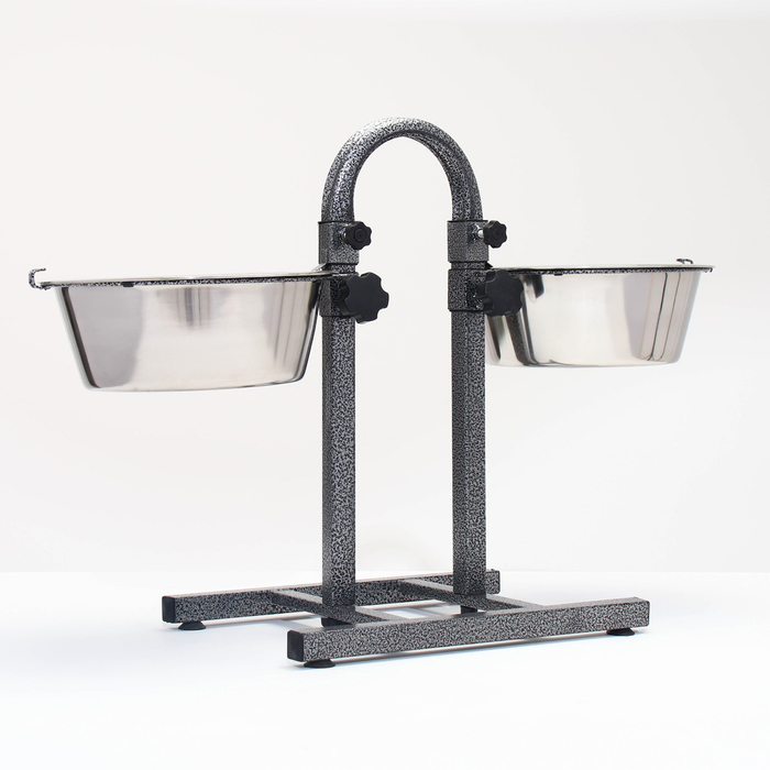 Подставка с мисками, 2 х 500 мл, высота 30 см, разборная, чёрная