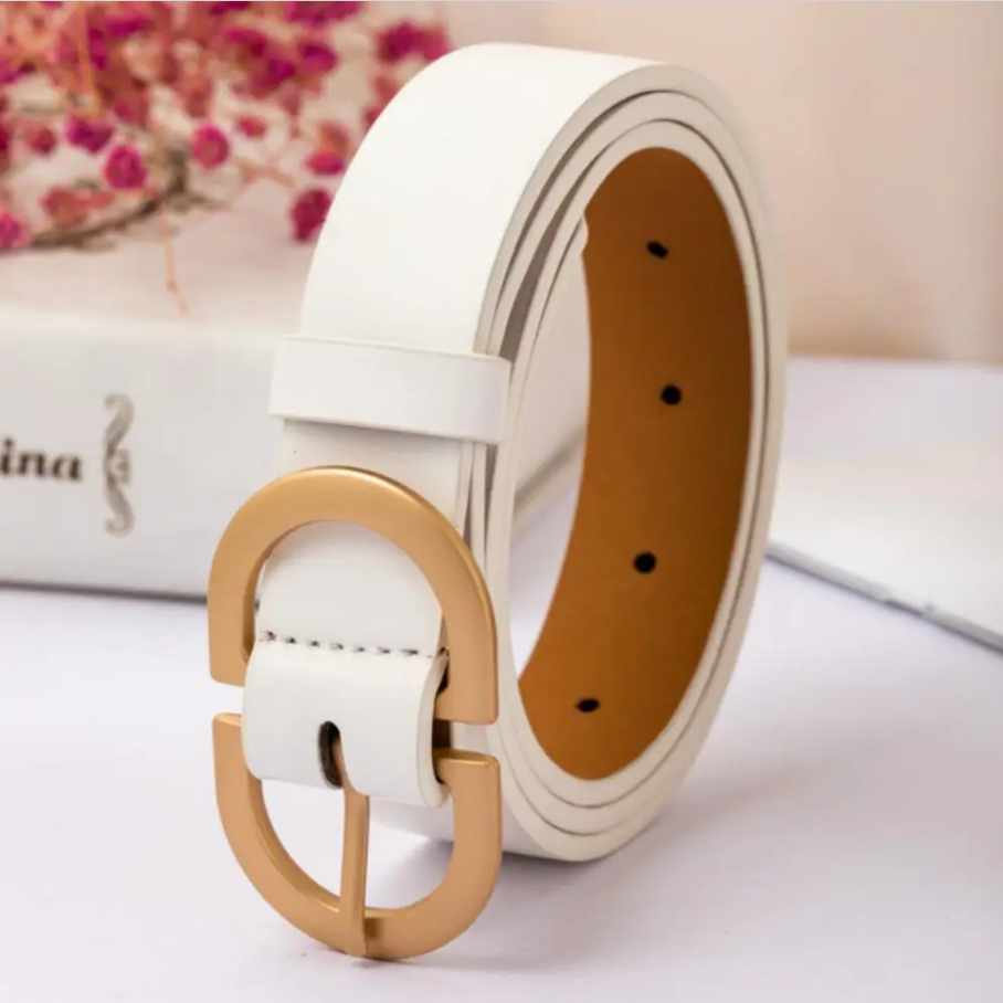 Ремень белый с золотой пряжкой 85 см