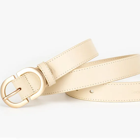 Ремень молочный с золотой пряжкой 115 см