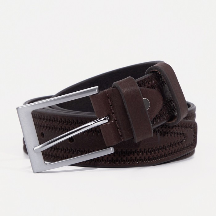 Ремень мужской, ширина 3,5 см, винт, пряжка металл, цвет коричневый