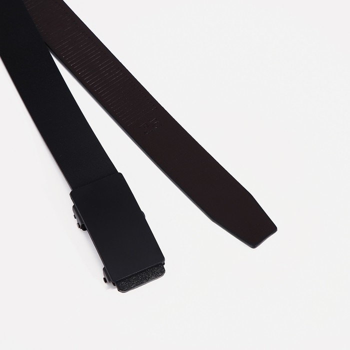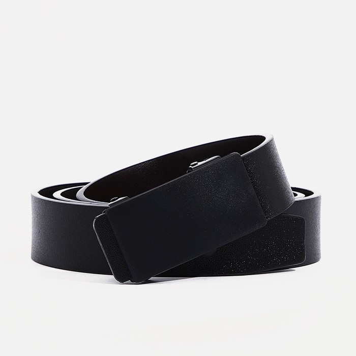 Ремень мужской, ширина 3,5 см, затяжка, пряжка тёмный металл, цвет чёрный