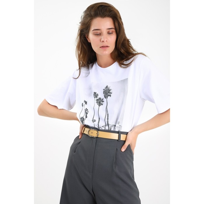 Ремень, ширина 3 см, винт, пряжка металл, цвет бежевый