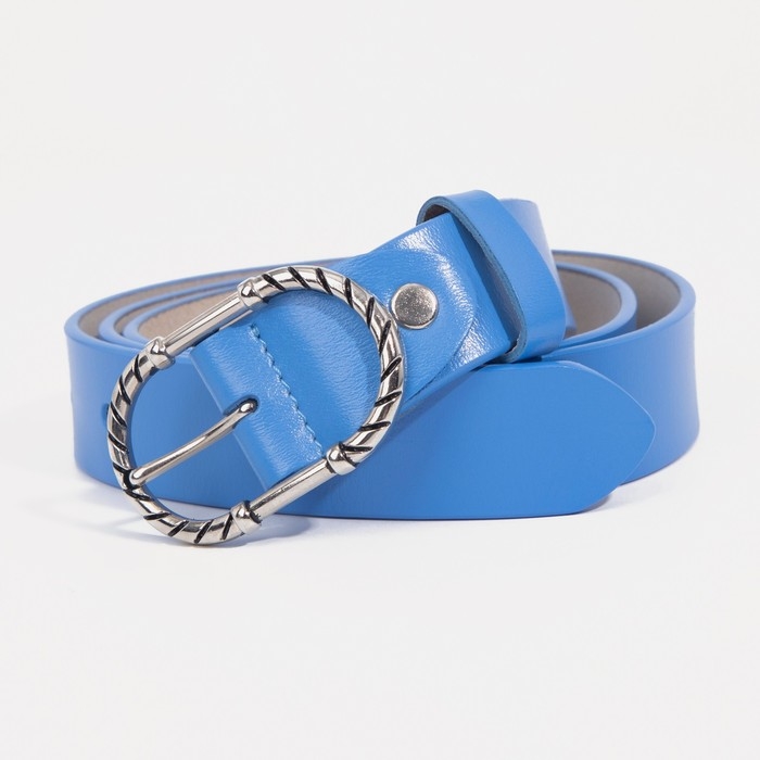 Ремень, ширина 3 см, винт, пряжка металл, цвет голубой