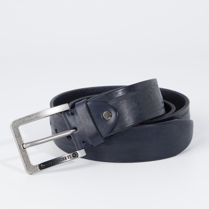Ремень, ширина 4 см, винт, пряжка металл, цвет синий