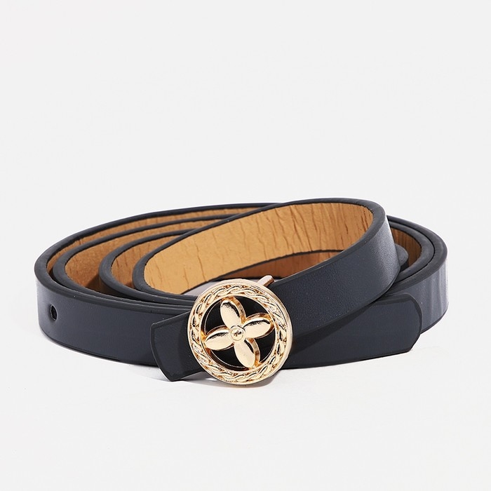 Ремень женский, ширина 1.4 см, пряжка металл, цвет тёмно-серый