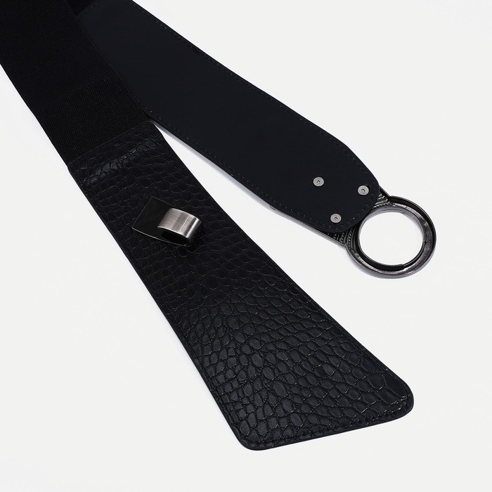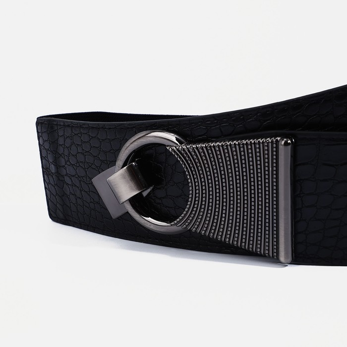 Ремень женский, ширина 10 см, на резинке, пряжка металл, цвет чёрный
